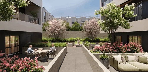 The development emphasizes outdoor living with private patios and balconies for each home, as well as communal green spaces. These areas are designed to encourage relaxation and outdoor activities, fostering a lifestyle that embraces both indoor and outdoor comfort.