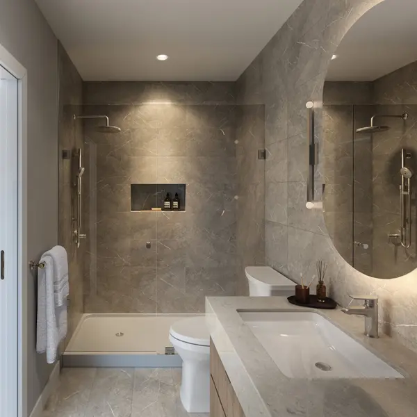 Reign features two towers comprising both residences and rental homes. The interiors are designed with a blend of timeless elegance and modern design, offering studios, one, two, and three-bedroom homes. High-quality finishes, sleek designs, and modern amenities such as Miele appliances, quartz countertops, and spacious balconies are standard features in these residences.