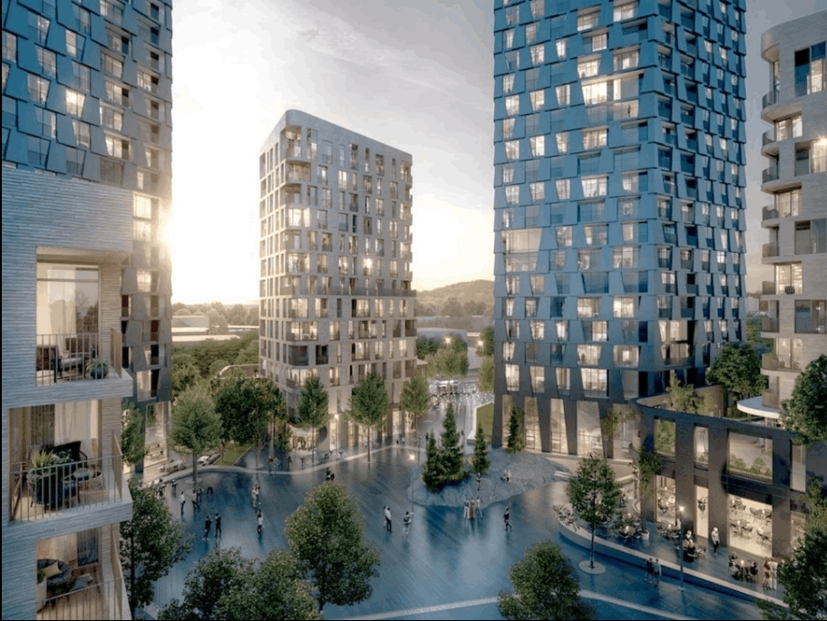 Aspiring to create an exceptional urban condition by providing free-flowing public space with four landscaped courtyards and multiple pedestrian connections throughout the site. This is an atypical urban strategy in North America, where dense city blocks are often enclosed by townhome podiums.